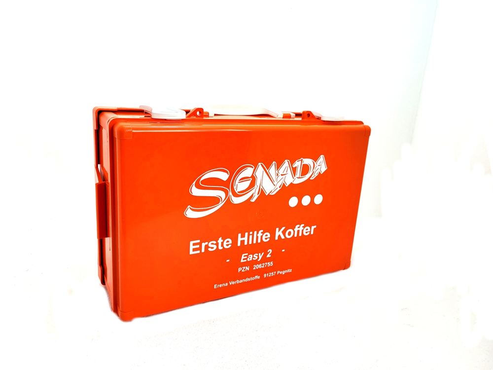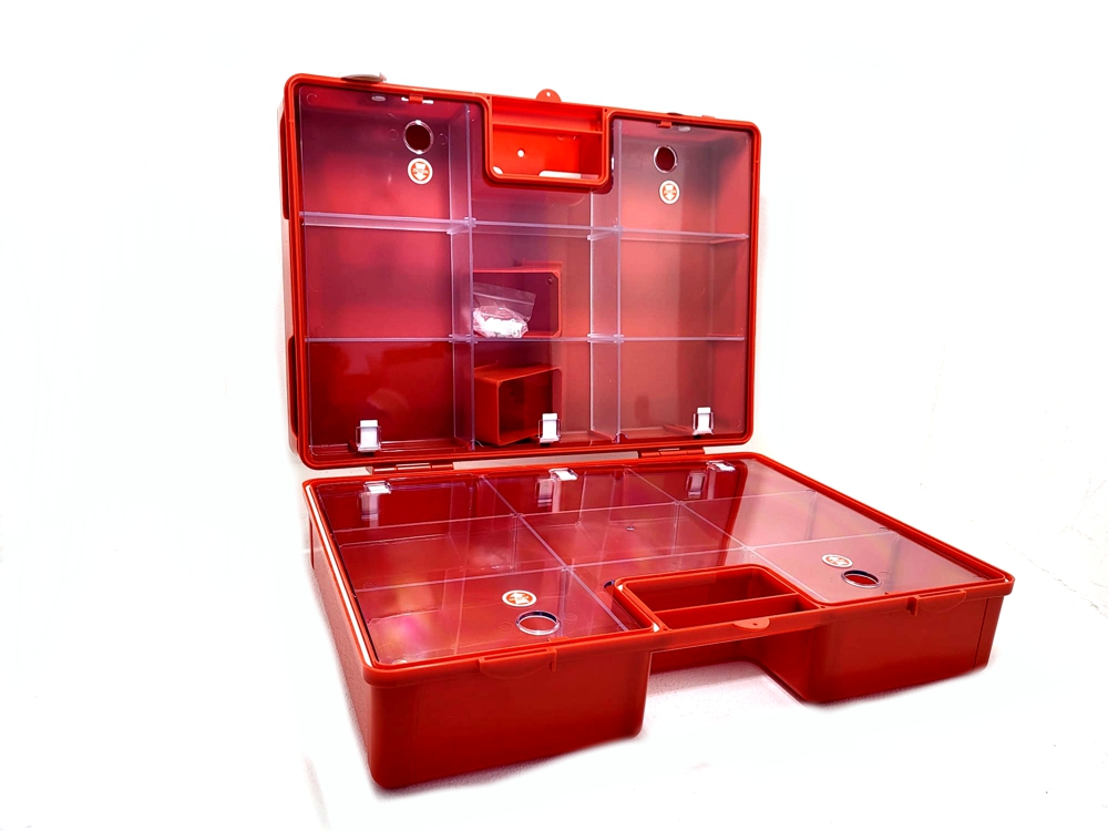 Erste-Hilfe Koffer leer aus Kunststoff inkl. Klemmwandhalterung, Schrauben und Dübel.