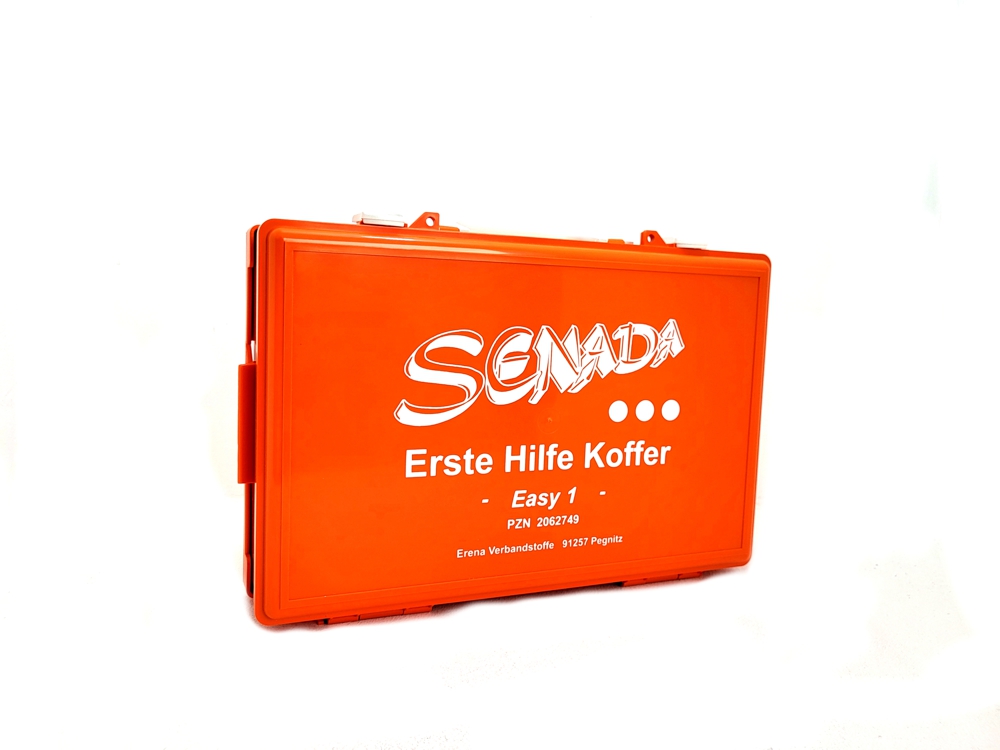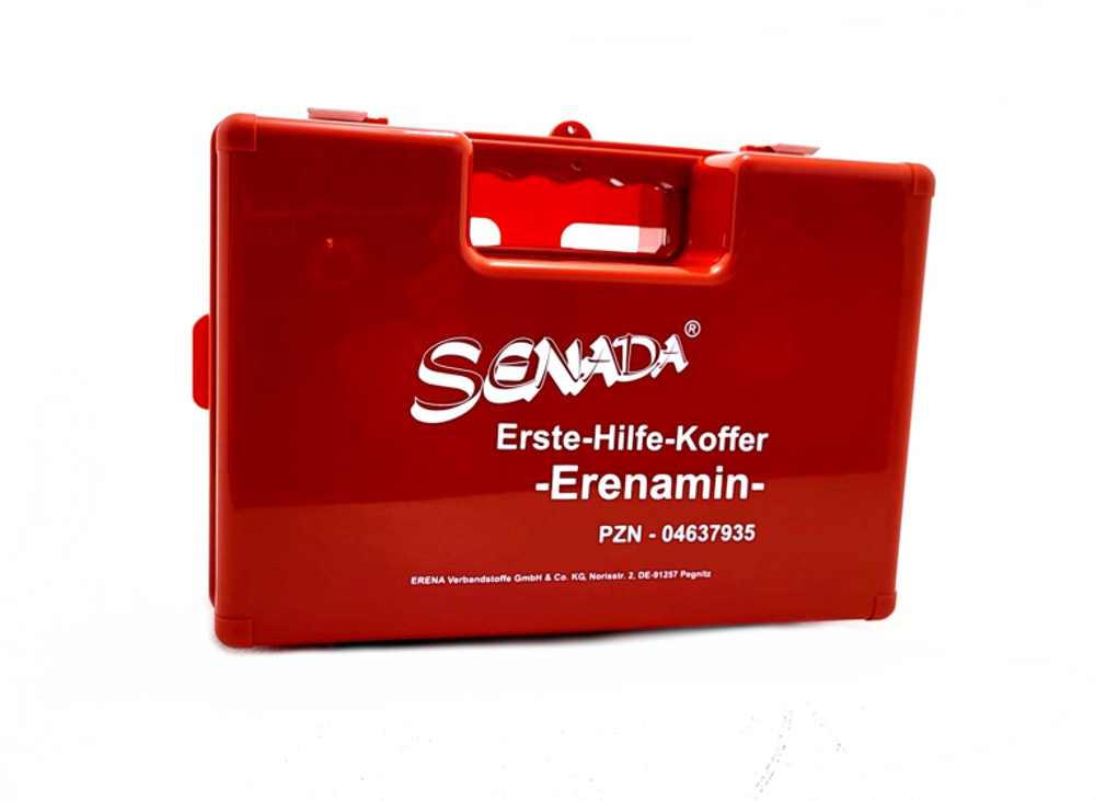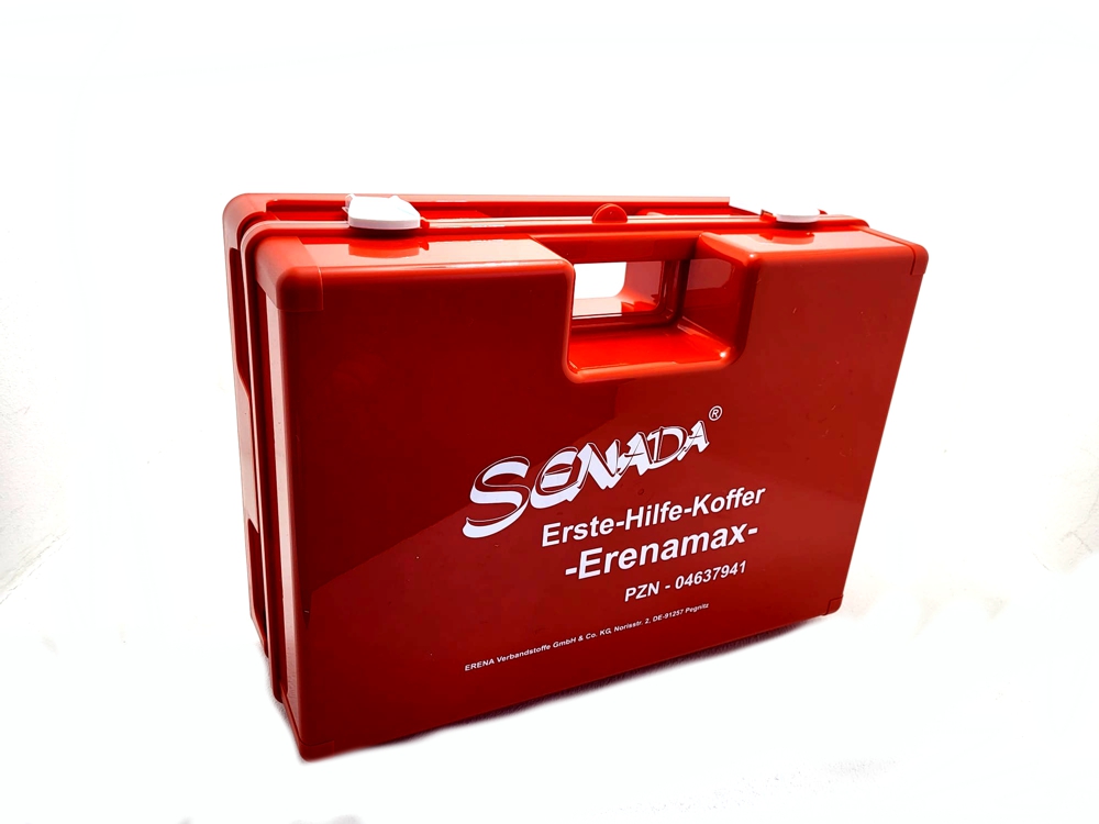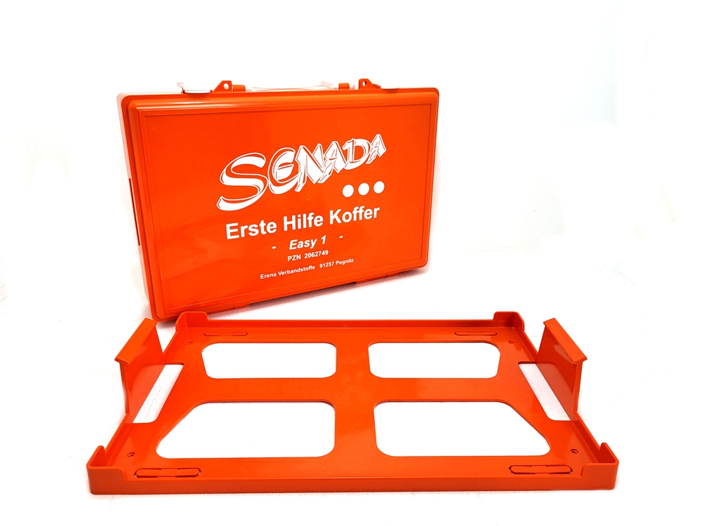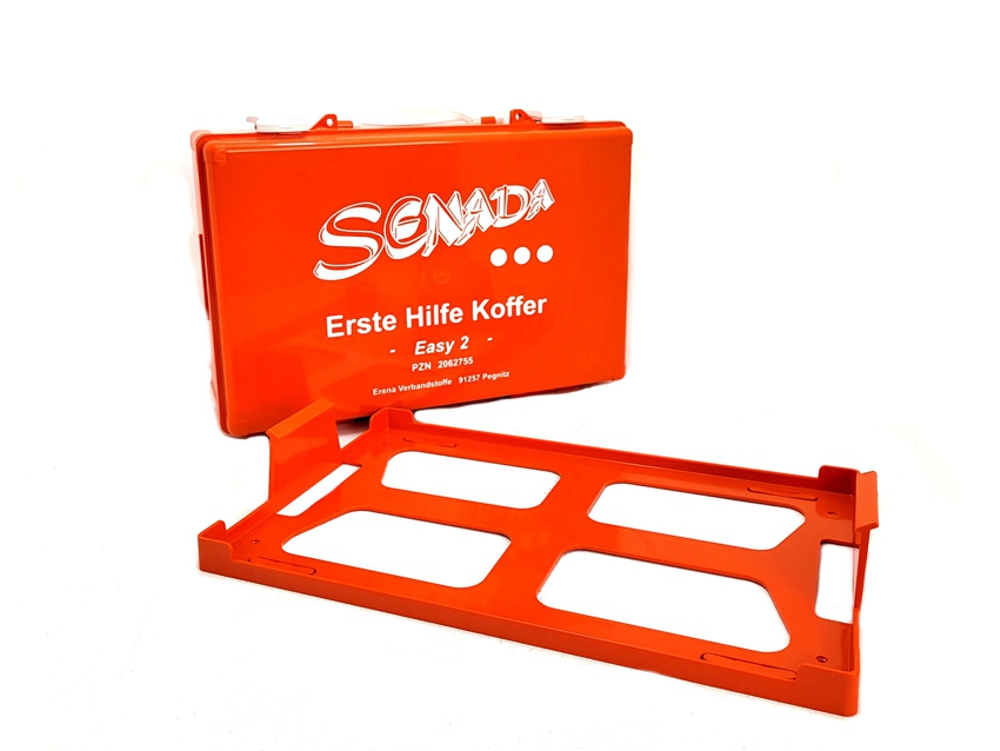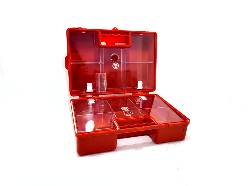 Erste-Hilfe Koffer leer aus Kunststoff inkl. Klemmwandhalterung, Schrauben und Dübel.