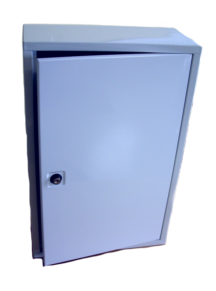Erste-Hilfe Schrank leer aus Kunststoff.