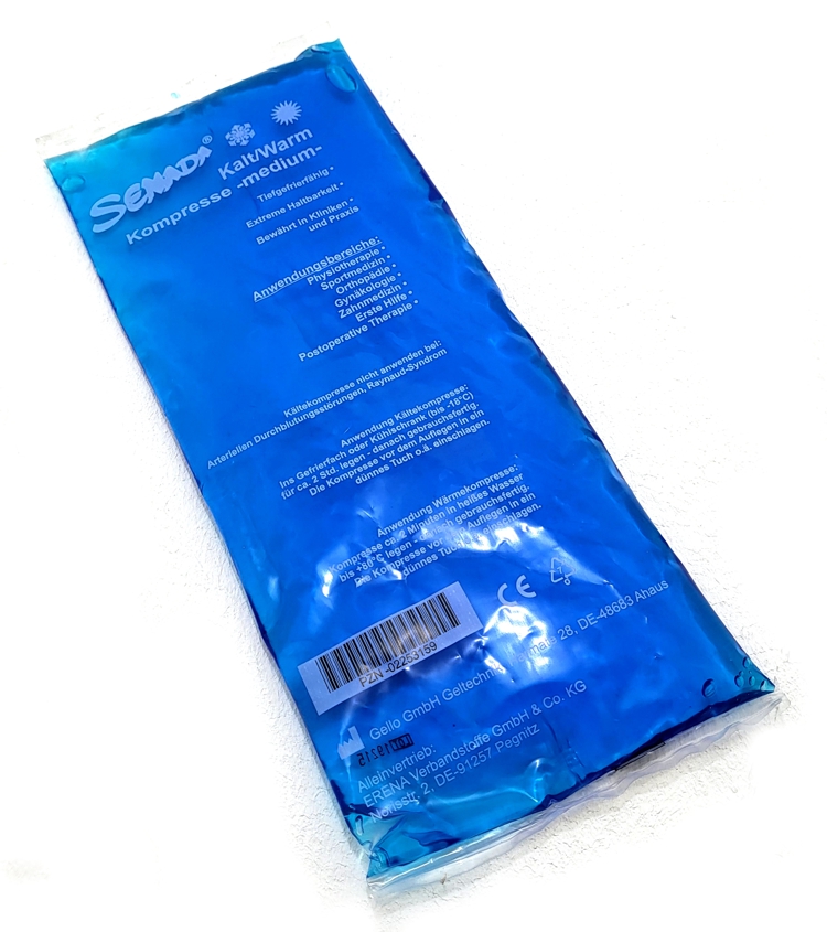 Vor Anwendung, die Kompresse im Gefrierfach etwa 2 Stunden lang kühlen. Bei Anwendung, die Kompresse mit einem dünnen Tuch einwickeln. Nach dem Gebrauch empfiehlt es sich, die Kompresse im Gefrierfach aufzubewahren, damit diese immer gebrauchsfähig ist.